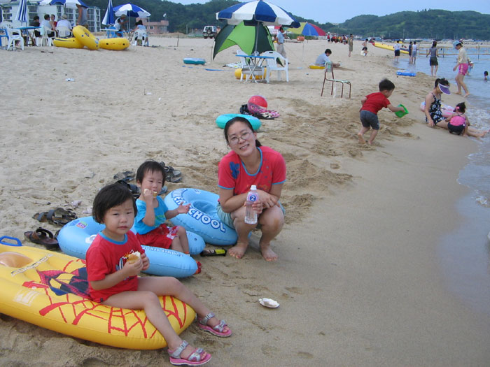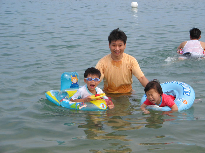형민이도..시은이도 바닷가에서 이렇게 튜브 타고 놀기는 처음입니다.