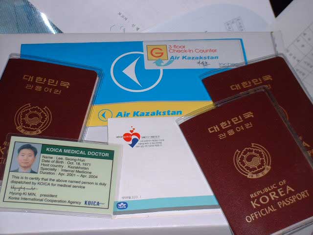까작스딴으로 떠나기 전...여권을 받고..가까운 사람들과 인사를 나누고 먼 길로 떠나는 준비를 했습니다.