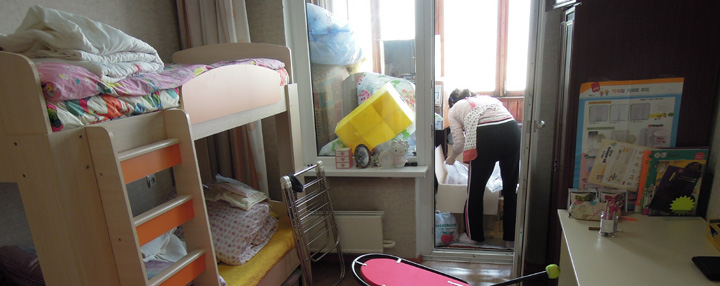 김치 냉장고는 없지만.. 12월 내내 아이들 방 바깥쪽 베란다의 온도가 적절했습니다. 하지만 1월 들어 온도가 많이 떨어져서(밤에는 영하 30도)... 이제 이곳도 안전한 보관 장소가 아닙니다. 김치가 얼어 버리니까요. 그래도 이곳만한 곳이 없기에 지금도 이곳에 두고 있습니다. 2012.1.15