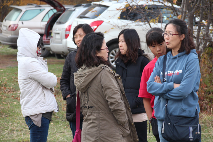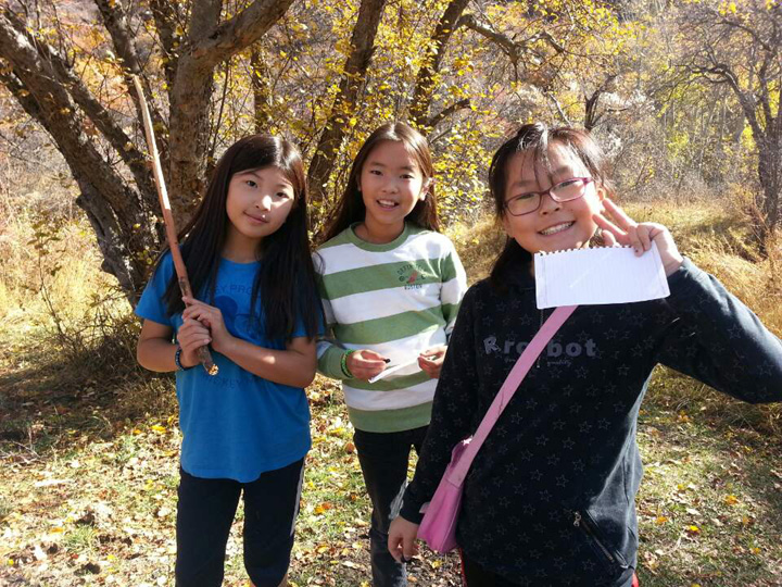 5 가정이 악사이 계곡을 따라 올라갔습니다. 멋진 가을 소풍 장소를 발견했지요.