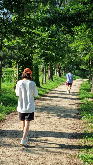 "오빠 저 앞에 먼저 걸어가 봐" 성은이의 스마트폰 카메라에 형민이가 담겼습니다.