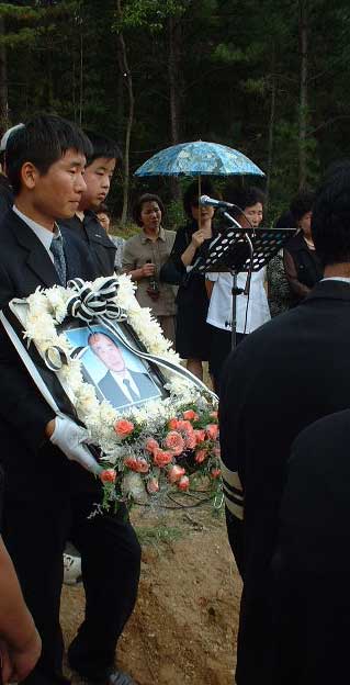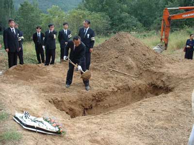 모두가 줄 지어...장지로 올라갔고...100여명의 조문객들과 함께...미리 파 놓은 무덤 터 안에 관을 내린 뒤....예배가 드려졌습니다. 그리스도인들에게는 죽음이 절망이 될 수 없음을 알고 있지만...당분간 이제 볼 수 없다는 그 아쉬움에 우린 눈물을 흘려야 했습니다. 예배가 마친 뒤...가족들이 한 사람씩 나와 삽으로 관 위에 흙을 뿌리기 시작했습니다. 한 삽..두 삽..던지는 흙더미에 할아버지의 관은 보이지 않게 되었고...가족들의 눈에는 눈물이 뚝뚝 떨어졌습니다. 누구보다 슬프게 운 분은 저희 어머니셨습니다. 어머니는 스무살에 시집을 오셨고...당시 삼촌과 고모는 초등학생이었습니다.