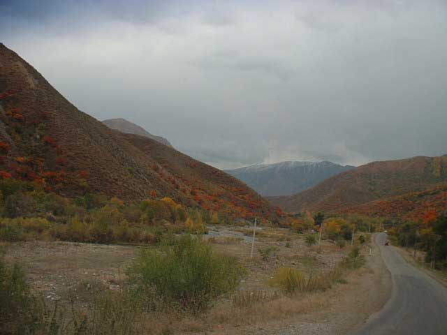 위 사진은 알마티 시를 빠져 나가는 모습입니다. 알마티 시는 외곽으로 빠져 나가는 도로들이 잘 나 있는데...뚜르겐 계곡으로 가는 이 길도 아주 잘 닦여 있었습니다. 길 좌우로 키 큰 나무들이 쭉 늘어 서 있고...좌우로 이국적인 경치가 이어지는 넉넉한 도로입니다. 가을이라 도로 좌우에는 단풍에 물들어가는 나뭇잎들로 조화를 이루고 있었고....시속 100-110Km로 달리면 1시간 30분 정도면 충분히 뚜르겐 계곡에 도달할 수 있으니...알마티에선 그렇게 멀지 않은 곳이라 할 수 있는 곳이었습니다...
