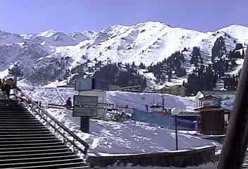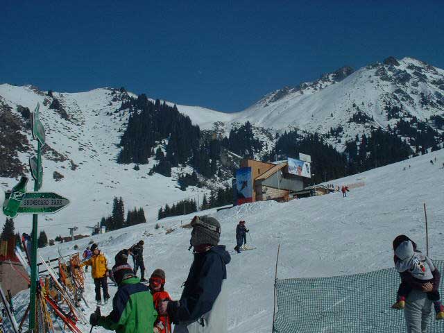 인공 눈으로 조성한 한국의 스키장과는 달리 이 스키장은 만년설이 있는 해발 3000미터의 침불락에 위치하고 있는 천연 눈으로 이루어진 스키장이라 자연 그대로의 천혜의 스키장입니다. 게다가..숙박과 식사 등 여러 가지 부대 시설이 잘 갖추어져 있고 서비스도 좋아서 많은 사람들에게 호평을 받고 있는 곳이죠..리프트 시설도 아주 훌륭하고...알마티 도심과 아주 가깝기 때문에..알마티에서 사는 한국인들은 침불락 스키장의 유혹을 떨쳐 버리기 힘듭니다. 산은 커녕 언덕 하나 없는 평지의 아스타나에는 스키장이 없지요...아마 저희가 알마티로 배치를 받았으면 형민이를 데리고 침불락으로 많이 올라가지 않았을까 싶습니다. |