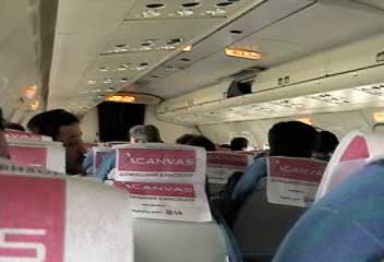 이것이 에어 까작스딴의 비행기 내부 모습입니다. 수도인 아스타나와 알마티 구간에만 이런 보잉 737을 배치하고 있고..그 외의 대도시로 취항하는 국내선 비행기는 모두 양쪽에 프로펠러를 가지고 있는 비행기입니다. 아주 작고 많이 흔들리지요..다행히 우리 비행 노선은 현대식 비행기인 셈입니다. 비행기 좌석의 등받이의 광고 문구가 눈에 띄지요? 이건 LG의 텔레비젼인 Xcanvas의 광고 문구입니다. 에어까작스딴 항공사의 경우.. 국내선과 국제선 모두.. 비행기 좌석의 등받이 광고가 LG의 광고입니다. 이처럼 까작스딴에선 어디서나 쉽게 LG의 광고를 접할 수 있습니다. LG의 TV광고 종류도 많아져 4종류 이상 됩니다. 광고 때마다 항상 월드컵 자막이 나오면서 한국 월드컵을 소개하지요. 정말 국위선양을 하고 있다고 봅니다. 하바르 TV의 유명한 장학퀴즈 프로도 후원하고 있습니다. |