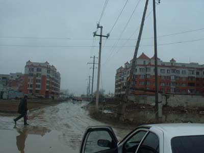 새 집으로 가는 길입니다. 아직 새 집으로 들어가는 진입로는 포장이 되어 있지 않습니다. 2개월 후면 아스팔트 포장이 된다고 하는데...왼쪽 사진에서 멀리 보이는 빨간 지붕의 예쁜 집이 우리가 살 집입니다. 날씨가 맑지 않아...좀 어둡게 나왔는데..집은 이곳에서 보기 드문 예쁜 집입니다. 전에 말씀드렸듯이 까작스딴은 대부분이 페인트 칠하지 않은 시멘트 색 그대로의 아파트들입니다. 하지만 아스타나에는 화려한 색상의 좋은 아파트들이 몇 개 있고..지금도 이런 아파트들을 짓고 있는데..우리 아파트도 그 중에 하나입니다.