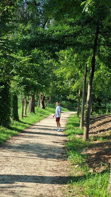 "오빠 저 앞에 먼저 걸어가 봐" 성은이의 스마트폰 카메라에 형민이가 담겼습니다.