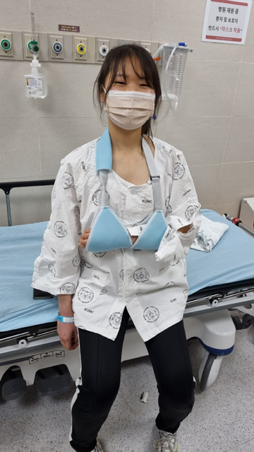 입학하자 말자 고대 여자축구부에 들어가겠다는 포부를 가지고 FC 엘리제 트라이아웃에 참가했던 시은이는 연습 경기에서 태클에 걸려 넘어지면서 왼쪽 쇄골골절을 입었습니다.