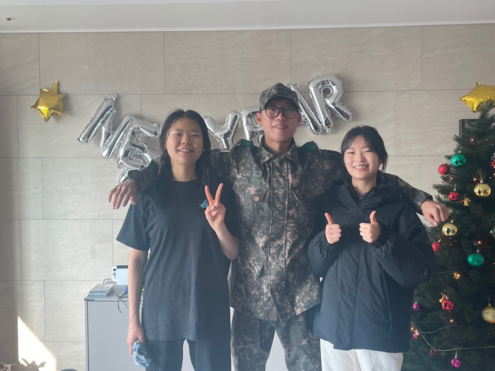 오빠가 휴가 나오니 동생들이 무척 좋아합니다.