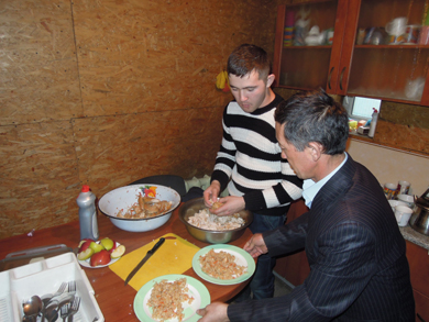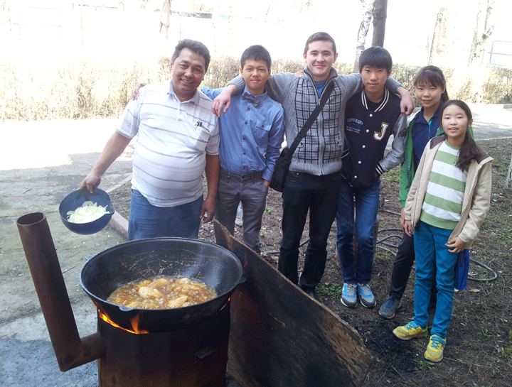 부활주일에는 으르겔르에서 유목민 전통 음식인 "팔라우"(러시아어로는 쁠롭)를 함께 만들어 먹었습니다. 기름에다 당근을 주로하는 야채를 넣고 쌀과 고기를 넣어 끓이는 음식인데 교회가 함께 모일 때마다 주로 해먹는 음식이죠.