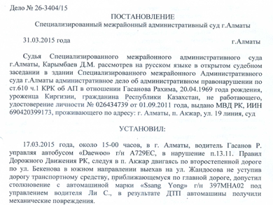 그런데 그 3월 MK 수련회가 열리기 딱 1주 전, 불의의 차량 접촉사고가 발생했습니다. 비보호 좌회전 하려는 시내버스가 직진 중인 우리 차를 들이받는 바람에 우측 뒷바퀴가 안쪽으로 휘어졌고 차량 운행이 불가능해진 것이죠. 시내버스 운전사의 과실이지만 카자흐스탄에서는 보험회사의 보험금을 타기 위해서는 반드시 교통경찰을 부르고 행정법원 재판을 통한 판결문이 필요합니다. 좌측이 사고 현장, 우측이 판결문 전문입니다. 재판은 1달이 소요되었고... 재판이 끝나기 전에 차량을 수리하려고 해도 부품을 주문하는데만 해도 3주간 걸렸습니다.