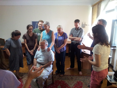 세례를 받기 직전 기도하는 모습입니다. 알마티 뿐 아니라 자라치니, 제트겐 지역의 새 신자들이 세례를 받는데 자라치니의 뚜마르 가정도 이번에 세례를 받았습니다.