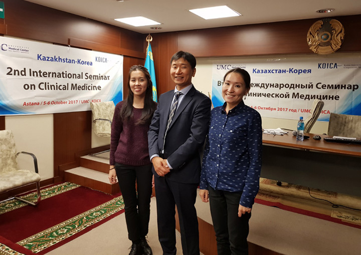 그 동안 주 중에 잠시 아스타나를 방문해서 이 같은 일을 할 수 있었던 것은 아스타나에 상주하며 이성훈 M을 돕는 현지인 조력자 아셈(사진의 왼쪽)과 갈리야(세미나 통역) 덕분입니다. 아셈은 2016년 10월부터 UMC 현지의료진 교육 프로그램을 위해 일해왔는데 주로 현지 공무원들을 접촉하거나 약속을 잡고 통역 하는 일이었습니다. 카자흐스탄 남부 쉼켄트에서도 남쪽으로 2시간 떨어진 사리아가쉬라는 지역 출신의 무슬림 아가씨인데 지난 여름 카자흐스탄 북쪽 스테프나고르스크의 청년을 만나 결혼했습니다. 이성훈 M도 그 결혼식에 다녀왔지요. 앞서 보여드린 누르다나의 교회 결혼식 말고 카자흐 민족 전통 결혼식 장면을 볼 떄가 된 것 같습니다.