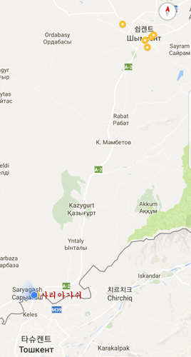 잠시 카자흐스탄 남부 국경마을 사리아가쉬로 가 보시지요. 좌측 사진이 우즈베키스탄과 육로 국경인 '카플란벡' 모습이고 우측에 카자흐스탄-우즈베키스탄 국경 철조망이 보입니다.