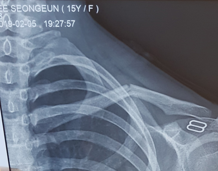 이번 기도편지는 저희 가정의 막내 성은이의 쇄골 골절 소식부터 전해야 할 것 같습니다. 지난 2월 초 겨울 농구 시즌을 맞아 인근 학교인 AIS 체육관에서의 농구 경기 중 드리블하던 성은이의 좌측 쇄골을 상대방 선수가 팔꿈치로 강하게 내리쳤습니다. 순간 성은이는 무척 큰 통증을 느꼈지만 시합 중인지라 몇 분 가량 더 참고 뛰다가 벤치로 들어왔고 쇄골 부위의 이상을 의심한 간호 선생님이 왼팔을 붕대로 고정해 준 그대로 집에 돌아왔습니다. 현관문을 여는 성은이의 얼굴에는 옅은 미소가 흘렀지만 상당한 통증에다 팔을 움직이기 힘들어하기에 무슨 일이 발생했음을 직감하고 급히 X-선 촬영을 위해 나섰습니다. 그리고 역시나.... 좌측 쇄골 골절을 확인했지요.